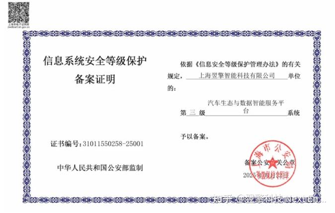 此次翌擎智能科技的“汽车生态与数据智能服务平台系统”通过等保三级认证,不仅是符合了《网络安全法》等相关法律法规,更是在行业层面,做到支撑车企构建有效的信息安全体系。