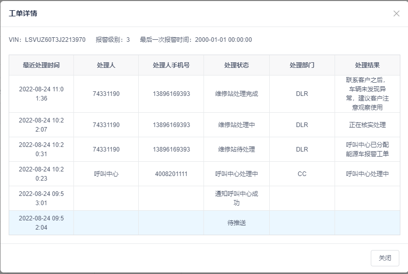 3)工单系统根据报警等级进行相应处理并回传处理结果。